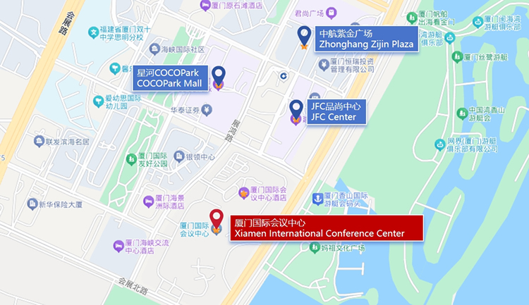 Close to the Xiamen International Conference Center, you'll find some nearby commercial areas: Coco Park Mall, JFC Center, Zhonghang Zijin Plaza, etc. Here are some dinning options corresponding to each for you to consider.